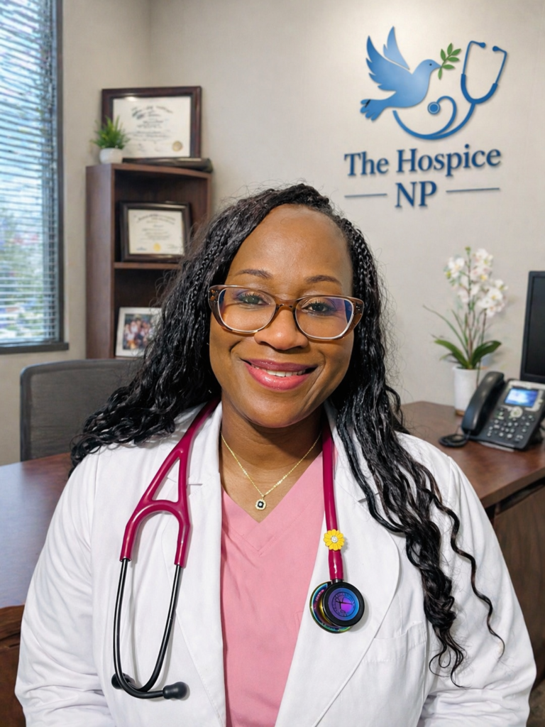 I am Dr. Christine Nganbou Kamkeu, DNP, AGNP, APRN-CNP, an Adult-Gerontology Nurse Practitioner specializing in both primary care and hospice. I am deeply committed to guiding patients and families through serious illness with compassion, clarity, and dignity. With over a decade of nursing experience across diverse care settings, including long-term care, acute care, primary care, and hospice, I bring a comprehensive and grounded perspective that bridges chronic disease management with end-of-life care.