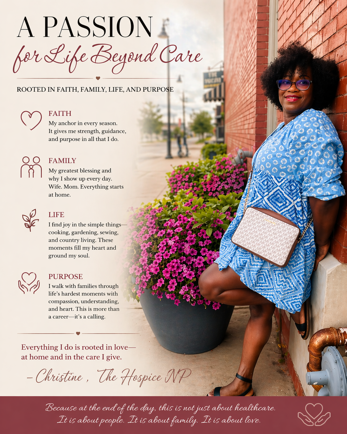 This is why my work is more than a career, it is a calling. Supporting patients and families through serious illness and end-of-life care is sacred work. It requires more than clinical knowledge; it requires heart. It requires understanding the human experience beyond the diagnosis. It requires seeing the person, the family, and the story behind every situation.